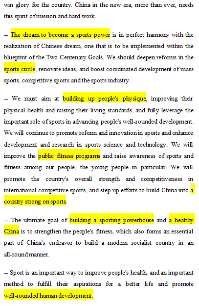 ⚫ 阅读文本资料——习近平关于体育的重要论述