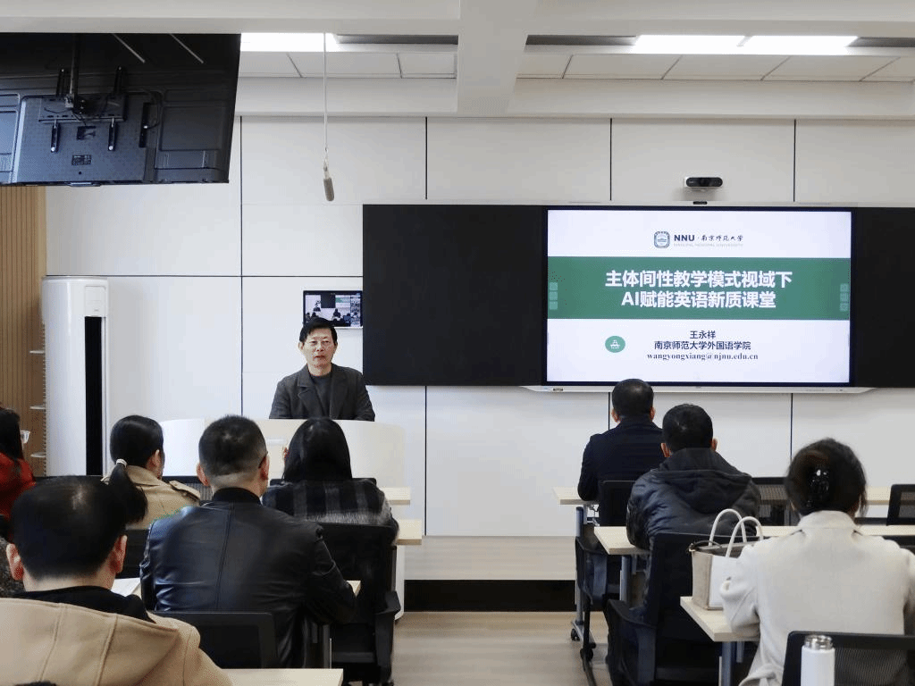 近日,beat365邀请南京师范大学beat365英国官方网站院长王永祥教授莅临beat365指导,并进行了一场以“主体间性教学模式视域下AI赋能英语新质课堂”为主题的学术讲座。全院60多名老师参加了讲座,现场气氛热烈,学术氛围浓厚。