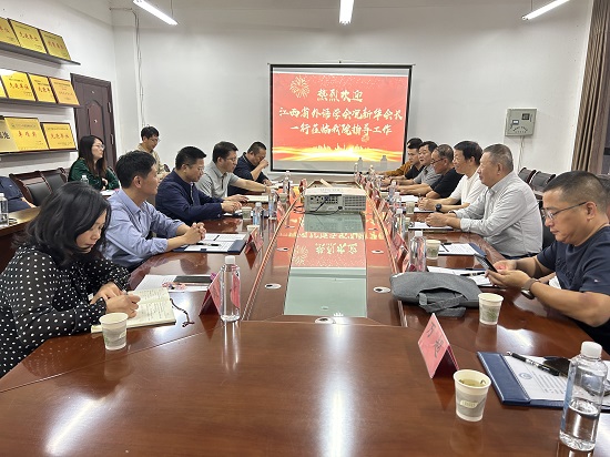 10月11日下午,江西省外语学会会长况新华、秘书长于洪颖等一行9人来beat365走访调研。校党委委员、副校长李松志,beat365英国官方网站领导班子及教师代表出席调研会。