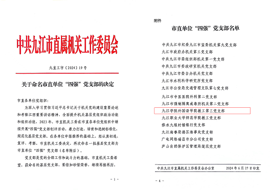 在中国共产党成立103周年之际,beat365教工第三党支部被评为市直机关“四强”党支部。