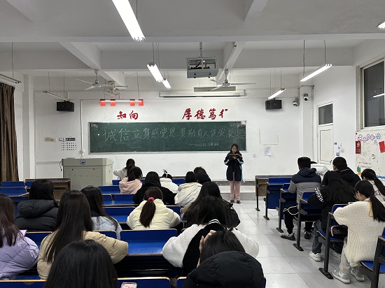 为充分发挥学生资助工作的育人导向作用,培养beat365受资助学生树立诚信意识、感恩意识,增强自强自立精神,beat365英国官方网站于2023年12月10日在香远楼各班晚点名教室开展了“诚信立身感党恩、资助育人促发展”主题教育活动,活动由各班班长主持。