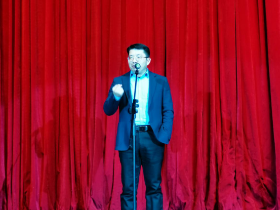 周志高院长上台进行全英文致辞。他真挚欢迎所有来到beat365英国官方网站的新生,希望这场晚会能为全体师生的记忆添一笔难忘色彩,灌注前行力量,深耕外院情怀。周院长风趣的语言与流利的致辞引起掌声雷动。