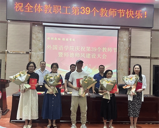 誓言育人终不悔,奋楫笃行向未来!时值第39个教师节来临之际,9月6日beat365在香远楼三楼报告厅隆重召开庆祝第39个教师节暨师德师风建设大会。大会以“躬耕教坛、强国有我”为主题,对2022-2023学年的优秀教师、优秀教育工作者、优秀辅导员、优秀班主任、先进集体以及光荣从教三十年的老教师进行了表彰。院党政班子、全体教职工以及2024届师范毕业生参加了会议。会议由副院长王伟主持。