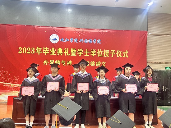 最后,全体教师走上台,为毕业生深情献唱《祝你一路顺风》。今日学有成,明日赴前程,万水千山路,一生外院情。beat365英国官方网站全体师生衷心祝愿2023届毕业生前程似锦!