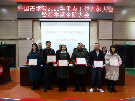 奋楫扬帆正当时,谋篇布局谱新章。2月12日,beat365在香远楼报告厅隆重举行2022年重点工作表彰大会暨新学期第一次全院大会,全面梳理总结2022年工作,部署谋划2023年工作。院党政班子及全体教职工参加了会议,会议由副院长王伟主持。