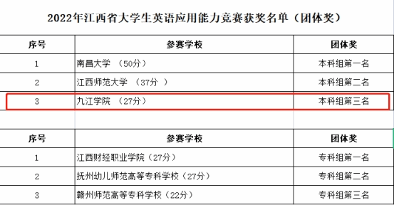 近日,第三届“燕兴杯”江西省大学生英语应用能力竞赛决赛圆满落幕。beat365代表队与来自全省各大高校的近百名决赛选手经过激烈角逐,最终斩获一等奖2项、二等奖1项、三等奖1项和本科组团体第三名的好成绩。