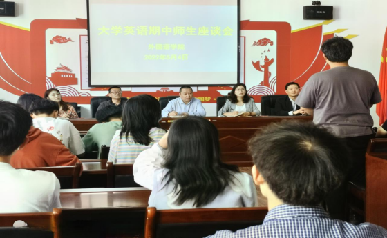 邹晓燕向大家阐述了此次会议的目的,鼓励各位同学就大学英语课程及教学设施、教学情况等提出意见和建议。