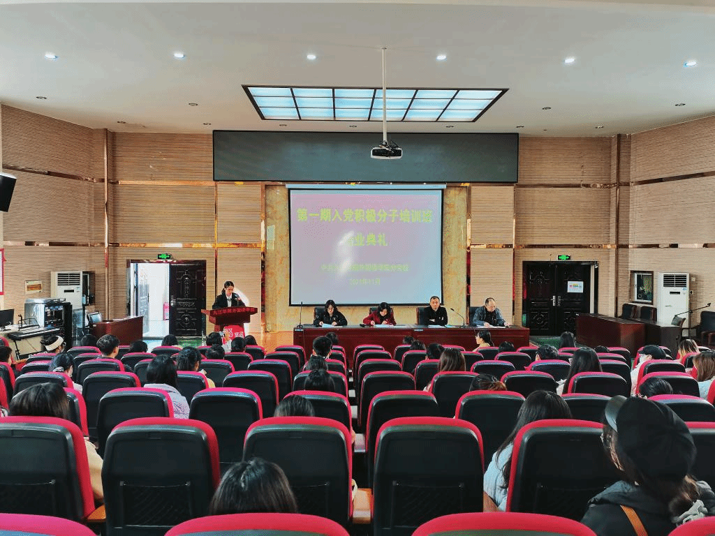 11月26日上午,中共beat365英国官方网站beat365英国官方网站分党校第一期入党积极分子培训班结业典礼在香远楼三楼报告厅举行,院党委书记、分党校校长罗其娟,院党委副书记、分党校副校长彭晓出席典礼。80余名学员参加典礼。结业典礼由彭晓主持。