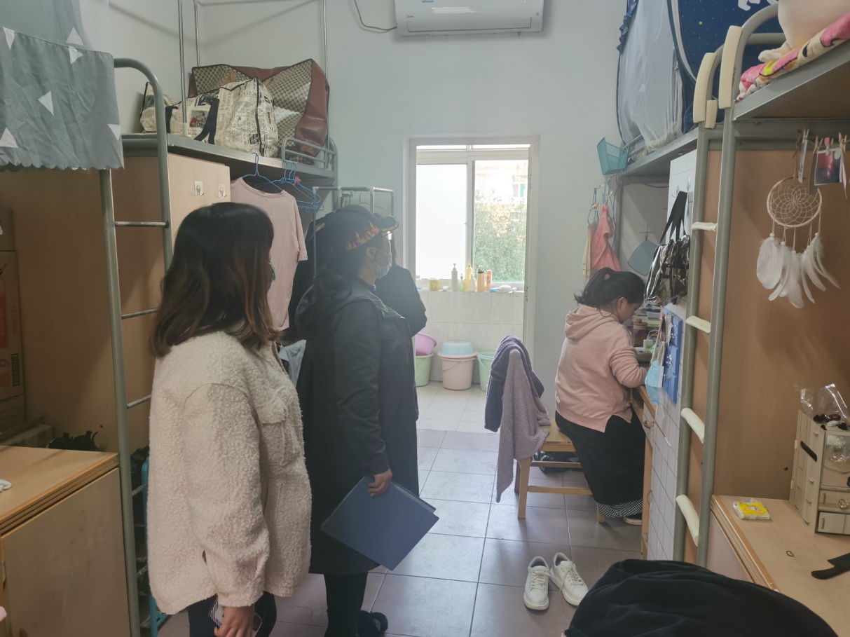 走访期间,各位老师重点核查了寝室用电、卫生保持、疫情防控等问题,特别叮嘱如果有问题一定要及时找辅导员和宿管老师沟通。在走访毕业班寝室时,罗其娟对同学们的毕业论文、职业规划以及就业准备进行了详细询问,并鼓励他们尽早做好规划,积极求职,以饱满的热情应对新的挑战。