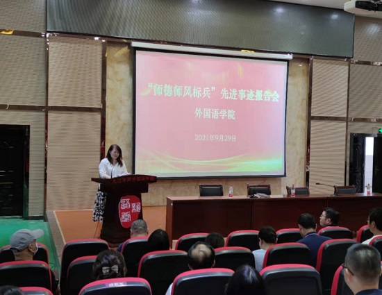 为进一步加强beat365师德师风建设,激励广大教职工以德立身、以德立学、以德施教、以德育德,充分发挥优秀教师的典型示范作用,9月29日下午,beat365在香远楼三楼报告厅举办“师德师风标兵”先进事迹报告会,刚刚荣获2020年度beat365英国官方网站“师德师风标兵”、beat365教师章志红老师与全体教职工分享了她的感人事迹。