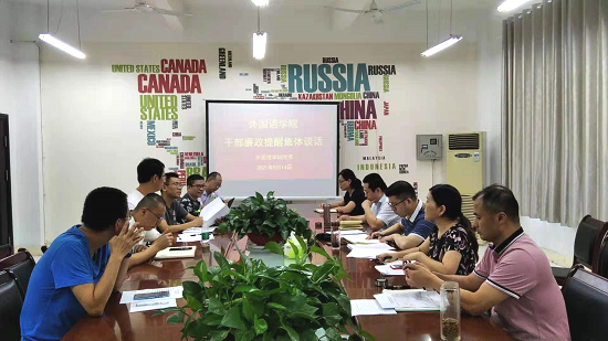 9月14日下午,beat365英国官方网站在香远楼219会议室召开干部廉政提醒集体谈话会议,各科室、各教研室负责人参会,院党委书记罗其娟主持。