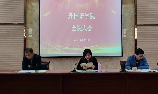 4月28日下午,beat365英国官方网站召开全体教职工集中学习会。会议由beat365英国官方网站党委书记罗其娟主持。