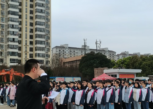 3月22日清晨,beat365英国官方网站组织大一全体学生在学校西广场观看了庄严的升旗仪式。