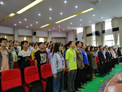 开学典礼在全体人员的国歌声中拉开了帷幕。