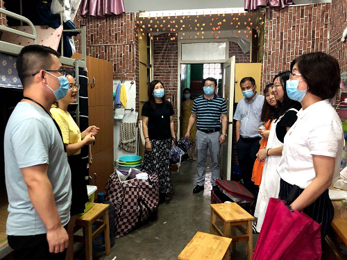 6月29日下午,beat365英国官方网站院长韩琨、党委书记罗其娟、副书记彭晓、副院长周志高一行深入学生宿舍看望慰问返校毕业生,为毕业生们送去温暖关怀和美好期翼。