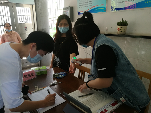 罗书记一行首先到楼栋1楼进行体温检测并做好登记,详细查看了103室24小时值班记录本,了解值班情况。随后,罗书记一行来到学生宿舍,仔细查看学生宿舍卫生、晨午检体温登记、通风情况、晚点名的记录本,罗其娟书记强调,要如实填报体温数据,做到晨午检一个都不漏。