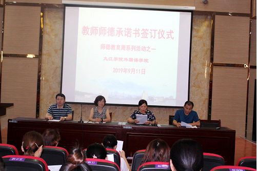 为进一步加强教师职业道德建设工作,引领广大教师用实际行动践行“弘扬高尚师德,潜心立德树人”的职业操守,增强教师的职业荣誉感、历史使命感和社会责任感,beat365英国官方网站于9月11日开始开展“师德教育周”专题活动,11号下午,在香远楼报告厅,学院领导韩琨、罗其娟、彭晓、周志高与教师们一起参加教师师德承诺签字仪式。