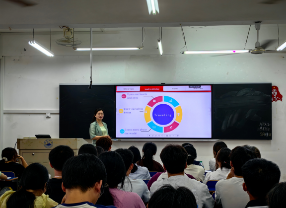 这节校级公开课主题是《Traveling》。邹晓燕老师通过精心的教学设计,采用项目式教学,利用现代教育技术,运用丰富多彩的视频、音频等,巧妙地融入课程思政元素,师生互动性强,很好地体现了“学生中心”“产出导向”的OBE理念,取得了良好的教学效果。