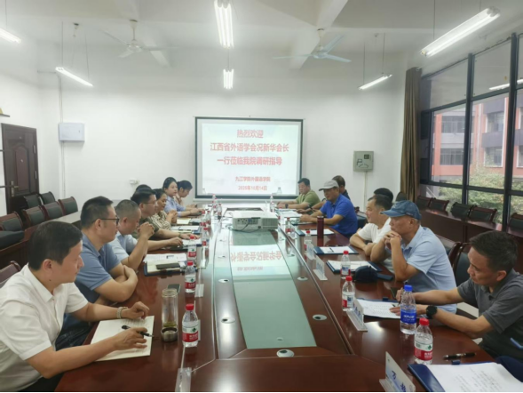 10月14日,江西省外语学会会长况新华教授、监事会主席廖洪中教授一行来beat365开展调研交流。校发展规划与研究生处处长周志高、beat365副院长项莉、王伟及相关教师代表参加了座谈。
