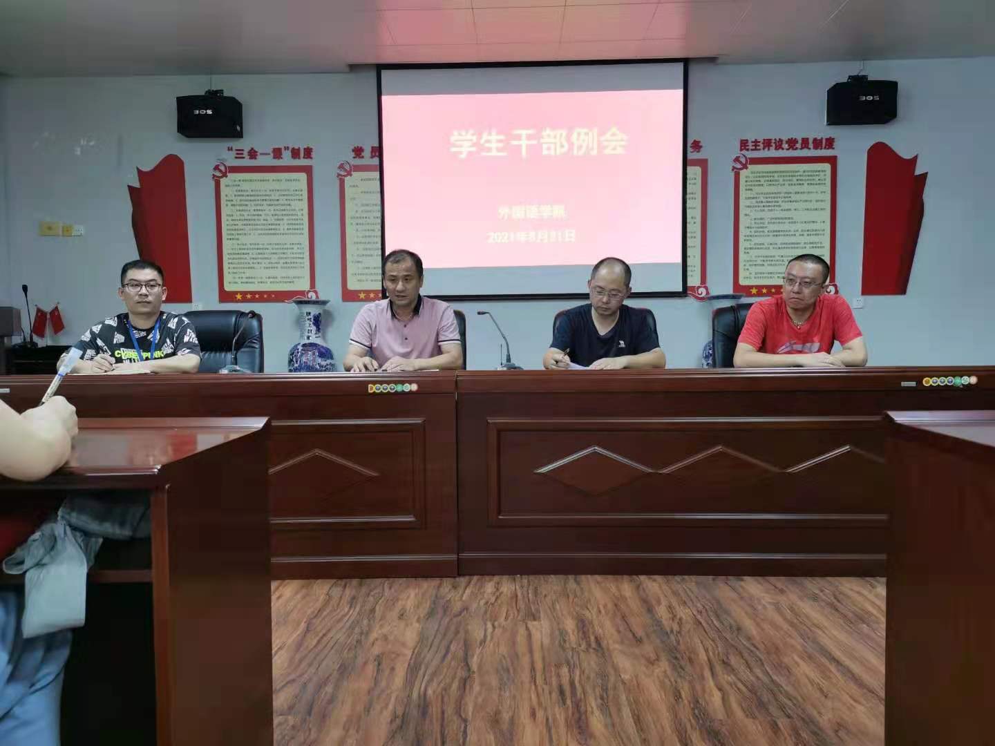 8月31日中午12:45,beat365英国官方网站在香远楼315会议室召开学生干部例会。本次会议旨在总结暑期各项活动经验,布置新学期学生干部工作。学院党委副书记彭晓出席,思政科科长江山、学生科副科长王少斌、何智博及全体学生干部参加会议。