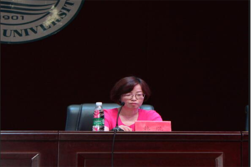 韩琨院长致辞,她对792名新生的到来表示热烈的欢迎和最诚挚的祝福。韩琨院长就beat365英国官方网站的师资力量、专业设置、教科研成果、硬软件设施以及生源结构等基本情况作了简单介绍。韩院长说,beat365英国官方网站是一个充满朝气和希望的学院,长期以来,一代又一代外院人秉着“外显精气神,语藏锦绣文”的院训扎实努力,奋勇拼搏,在外院史册上载下一个又一个辉煌,希望2019级新同学能够顺着学长学姐的脚步,为外院谱写新的篇章。最后,韩琨院长对同学们提出了几点希望:第一希望大家苦练语言基本功,以扎实的外语功底为基础,培养跨文化的深度沟通、交流、合作能力;第二希望同学们多读书,通过广泛的阅读提高思辨能力和国际问题分析能力;第三希望大家先做人再做事,增强明辨是非的能力以及担当意识,做“知礼节,懂规矩,讲文明,有品位”的人;第四希望大家注重身心健康,坚持锻炼身体,造就坚强的意志和宽广的胸怀。
