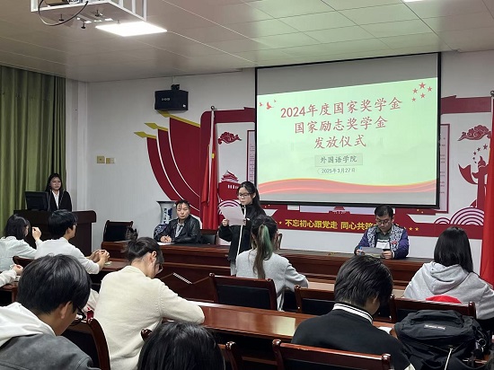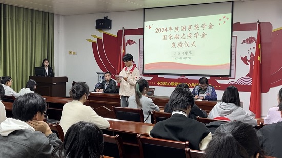 beat365英国官方网站党委副书记江山指出学外语专业的同学要有“语通中外,道济天下”的意识,结合国家奖学金和国家励志奖学金育人内涵,对同学们提出三点倡议:以勤奋为舟,逐梦无惧风浪,唯有脚踏实地,方能致远;勇于开口突破,以交流拓视野,打破语言与思维壁垒;以评估为镜,争做教育质量的推动者,呼吁师生以高标准自我要求,成为教育评估的践行者。