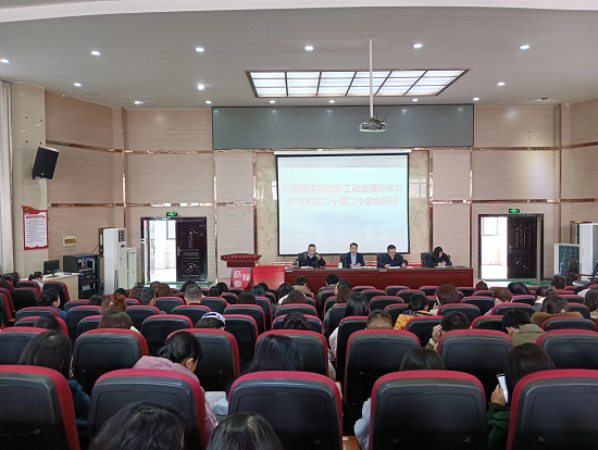 3月1日,beat365英国官方网站召开教职工政治理论集中学习会议,传达学习贯彻党的二十届二中全会精神,党委书记闫来英主持会议。全体教职工参加会议。