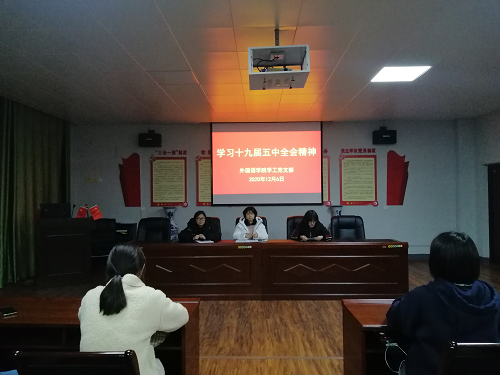 2020年12月6日晚,beat365英国官方网站学工党支部在香远楼315会议室召开党支部学习会,传达学习党的十九届五中全会精神。学工党支部61名党员参加了学习会,学习会由党支部书记江银凤主持。